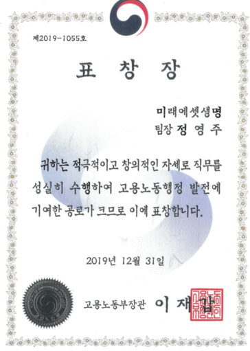 고용노동부 장관 표창장(정영주 대표), 연금수리학 교재(표지)입니다